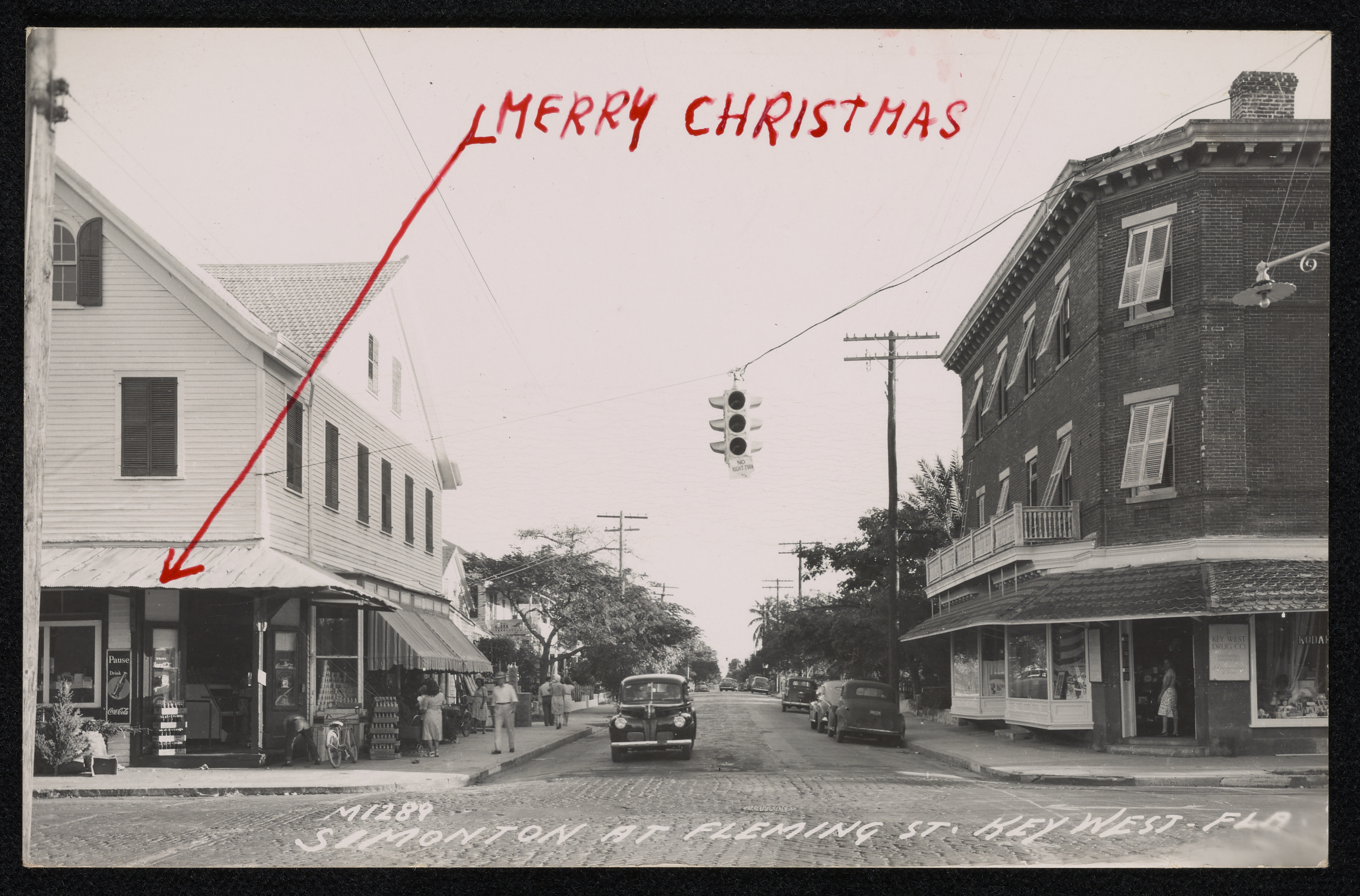 Postcard to UT Summers. Photograph of Simonton at Fleming Street, Key West, Florida. December 18, 1948.