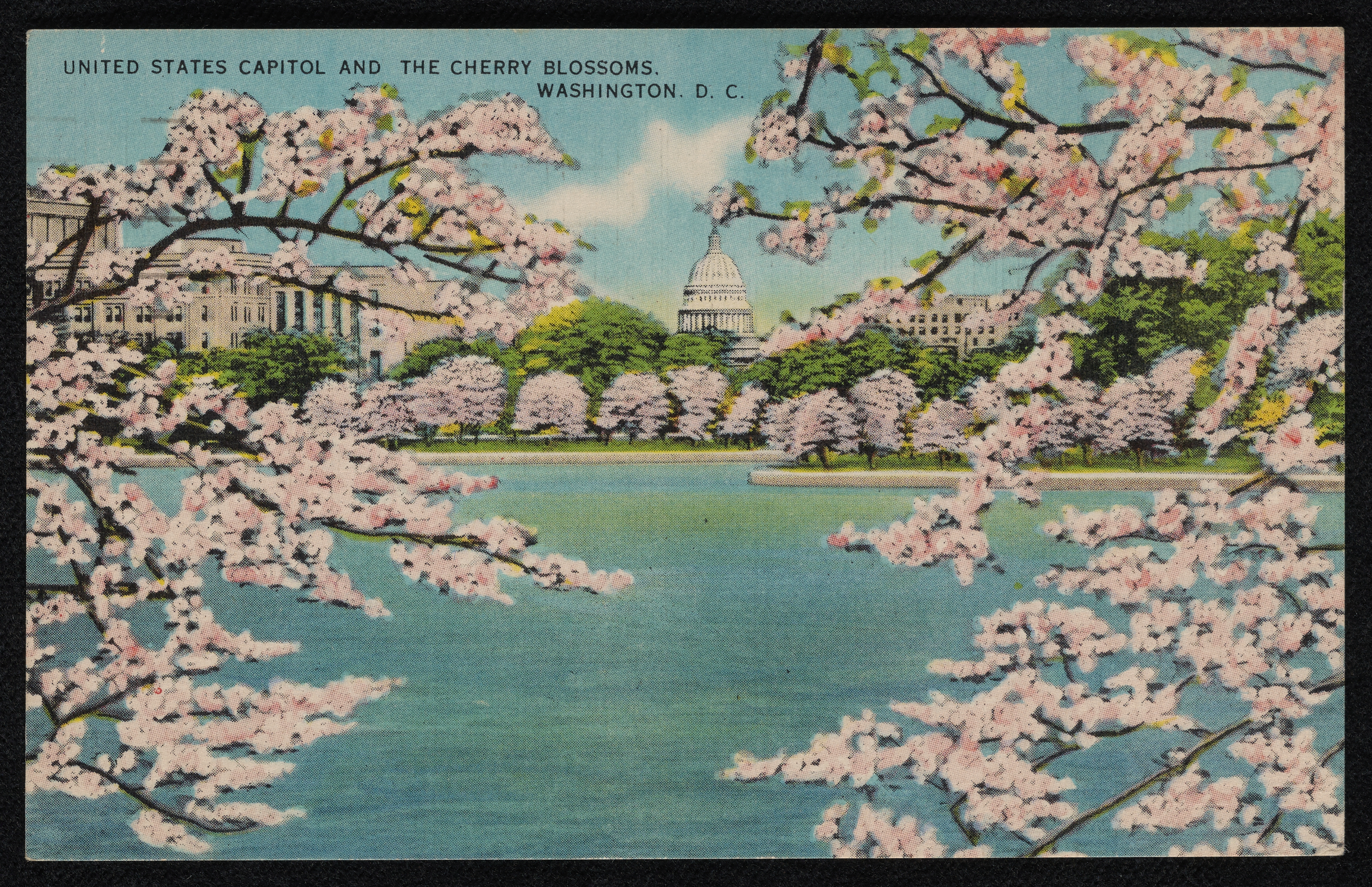 Postcard to Mrs. Lloyd Frankenberg (Loren MacIver). United States Capitol and the Cherry Blossoms, Washington DC. April 2, 1950.