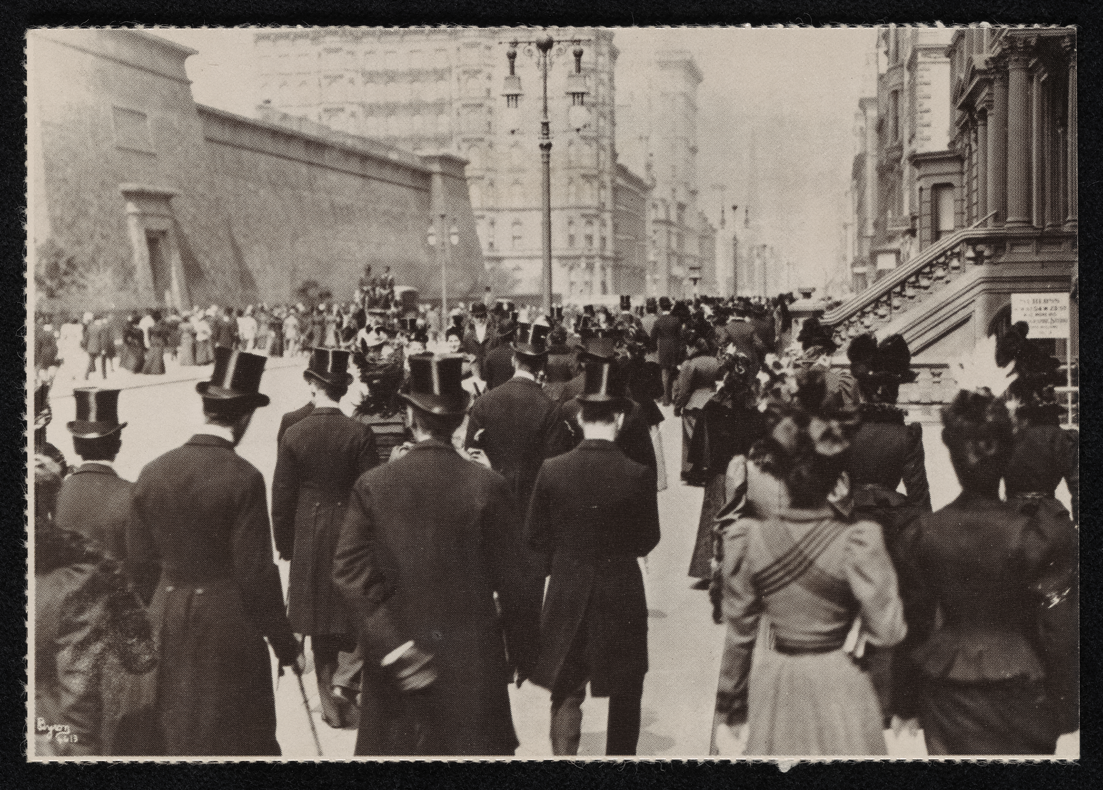Postcard to Frani Blough Muser. Photograph of New York City crowd (Easter Sunday 1898). Summer 1976.